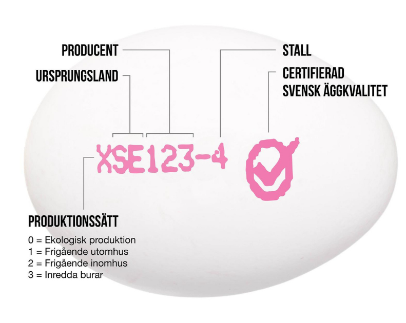 Alla ägg är märkta med en kod som anger produktionssätt, ursprungsland och producent. Ägget kan också vara märkt med en rosa check. När du ser en rosa check på ägget betyder det att ägget är certifierat i enlighet med svensk äggkvalitet. Den garanterar att hanteringen uppfyller Sveriges hårda krav inom djurvälfärd, livsmedelssäkerhet, smittskydd och produktkvalitet.