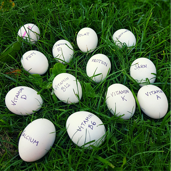 Ägg innehåller också vitaminer bl.a. A, D, E, K, B samt viktiga mineraler. Vitamin A är bra för synen, tillväxten och kroppens försvar mot infektioner och sjukdomar. Vitamin D och kalcium bygger upp skelettet och tänderna. Vitamin B2 som också kallas riboflavin är bra för hyn och stimulerar kroppens eget immunförsvar.